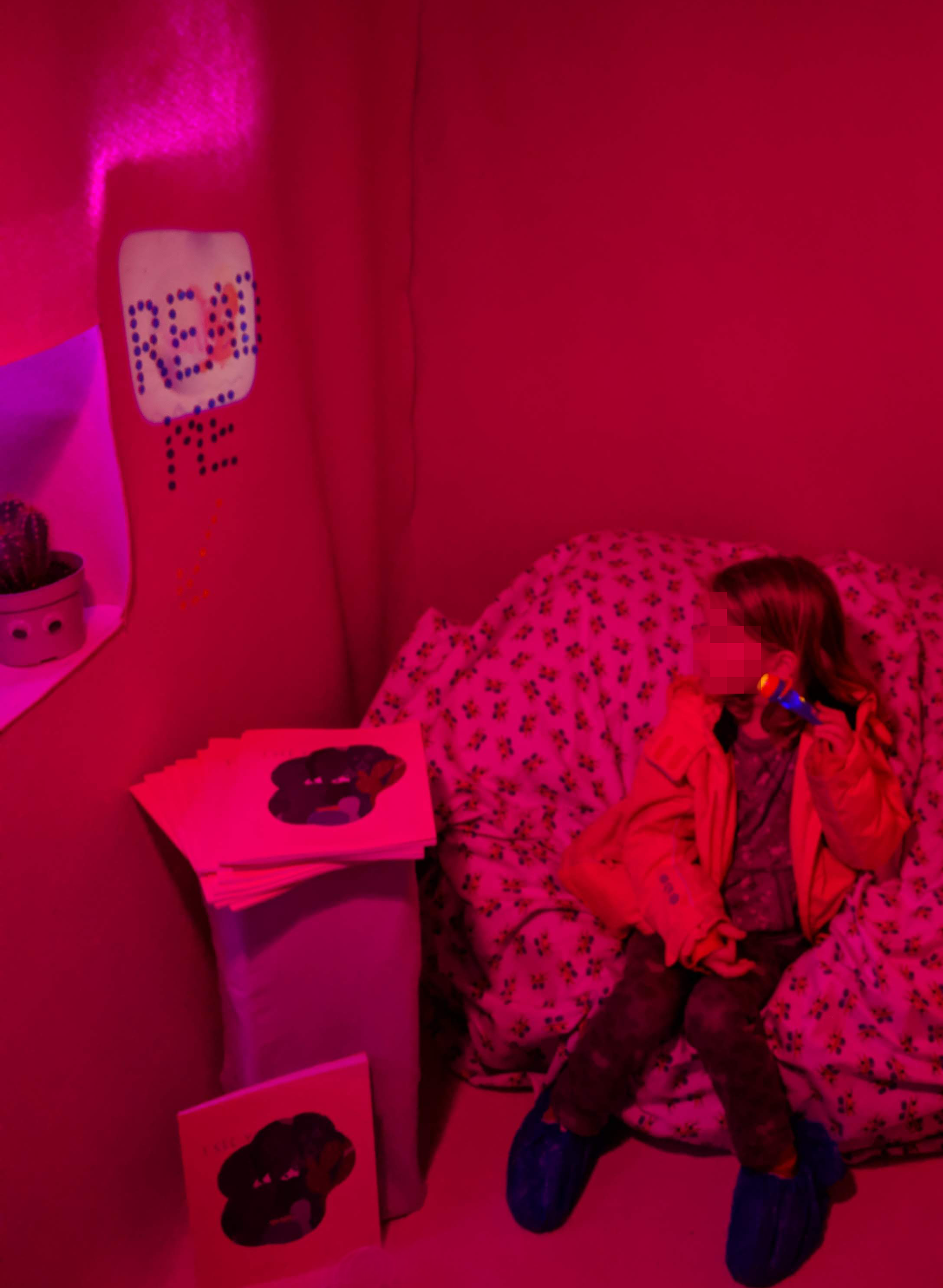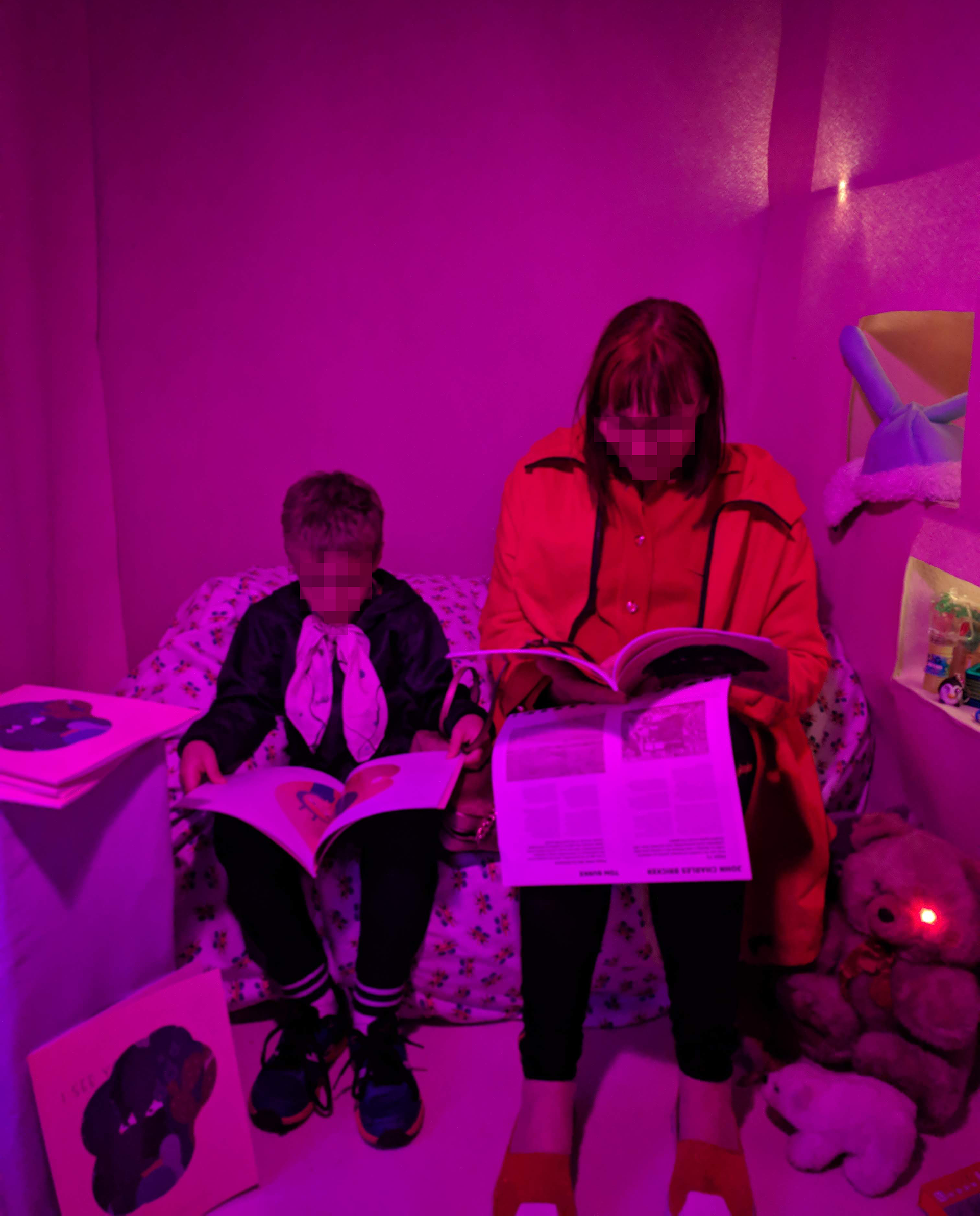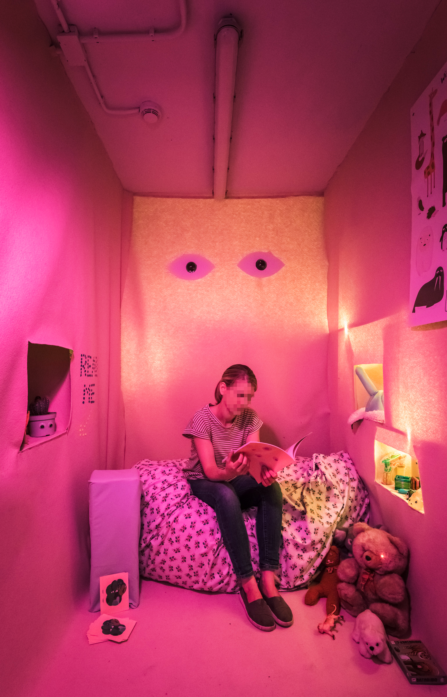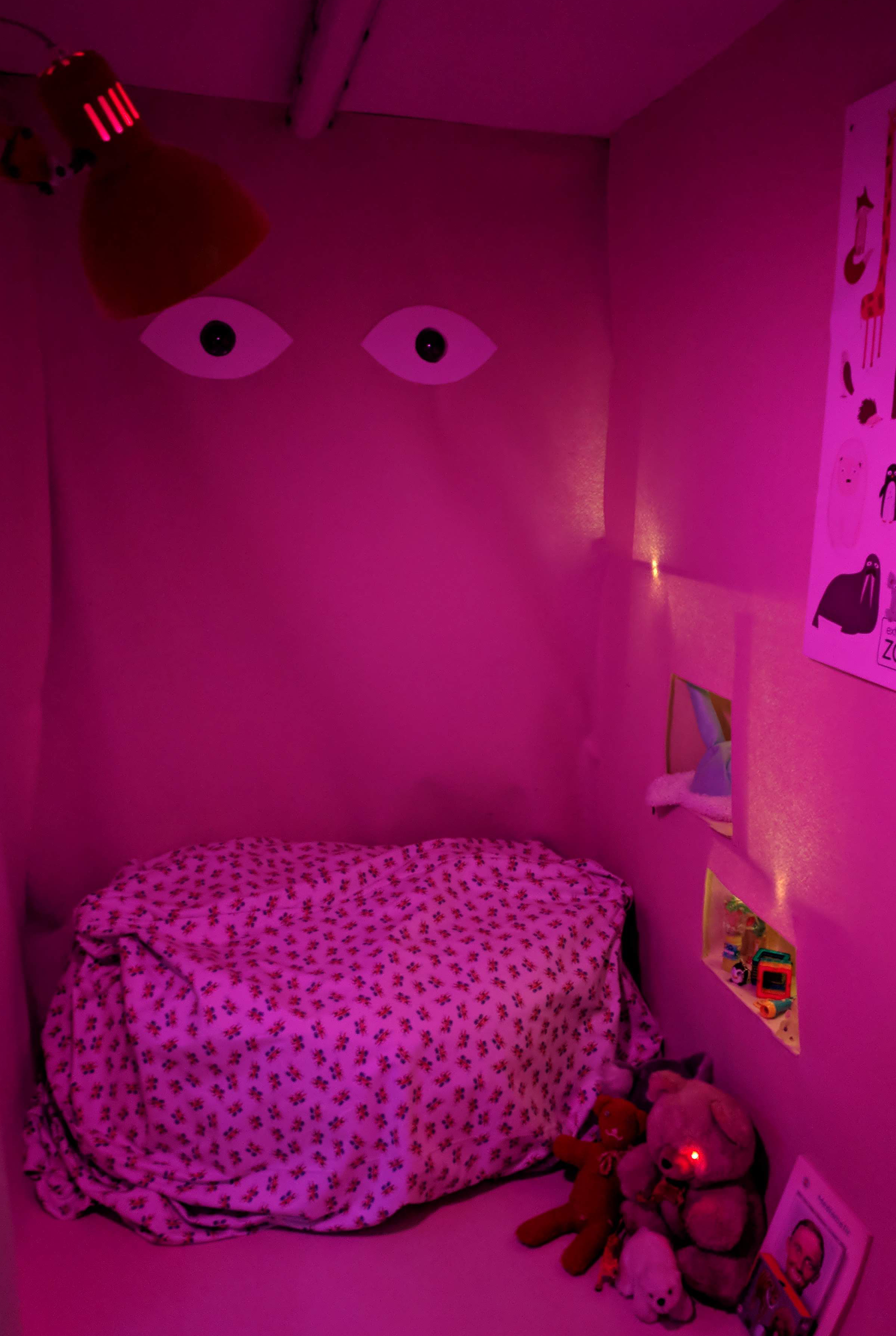 A near future speculative fiction children’s book, written and illustrated by the artist, on the topic of smart home devices and hacking the system in order to provoke debate around the normalisation of surveillance economy and data extractivism. An installation of the main character, El's, world was designed and built to create a fully immersive experience to accompany the book. What was once a library in a basement with no natural light became El's near future apartment bedroom. Characters from the book were subtly present throughout the space. Halexa, the all seeing smart home device, featured in the form of CCTV cameras which were placed throughout the exhibition space. The atmosphere of the room fluctuated between periods of comfort and complacency to instances of discomfort as the public navigated the space directly experiencing the sense of unease with being continuously watched, while also momentarily forgetting the fact. This sparked interesting debate around the subject of surveillance, smart tech and their increasing prevalence in the everyday lives of both children and adults alike. Perhaps adults are past the point of rescue when it comes to our complacency around surveillance technology but there is an abundance of potential hackers and critical thinkers in the next generation, with a natural curiosity and vivid imaginations. The revolution will not be CCTV’d!